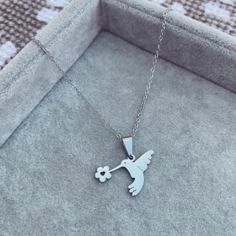 Collar Colibri Flor - Acero quirúrgico W18.D