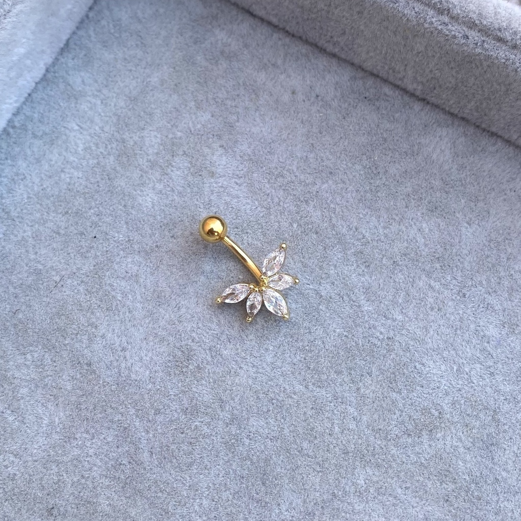Material: palito y bolita de acero dorado, diseño con brillos engarzados en acerado (metal bañado en acero)